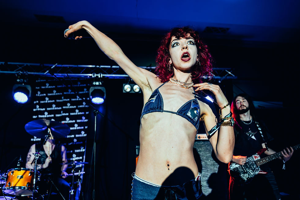 THE HARA had the pleasure of playing the headlining set on the TOTAL ROCK stage and they brought their absolute A game just for it. These boys are far from scared to show their true selves and stand out from the rest, their energy is unmatched and their fans love to bring the exact same attitude. The takedown stage was absolutely not immune to their antics with lead vocalist Josh Taylor doing whatever he wanted on and off the stage. Whether it was getting in his own wall of death, climbing on speakers or even taking a moment to grab a Guinness from the fridge at the bar there was not a moment that wasn't filled with chaos. They performed songs like Rockstar and Trophy that had the crowd singing and dancing along, the mosh pits were absolutely brutal, if you wanted to get to the bar you had to time it right or you might end up on the floor! As always THE HARA killed their set, they are a band of consistence and absolute panda-monium, if you haven’t been able to see these boys live you’re really missing out.